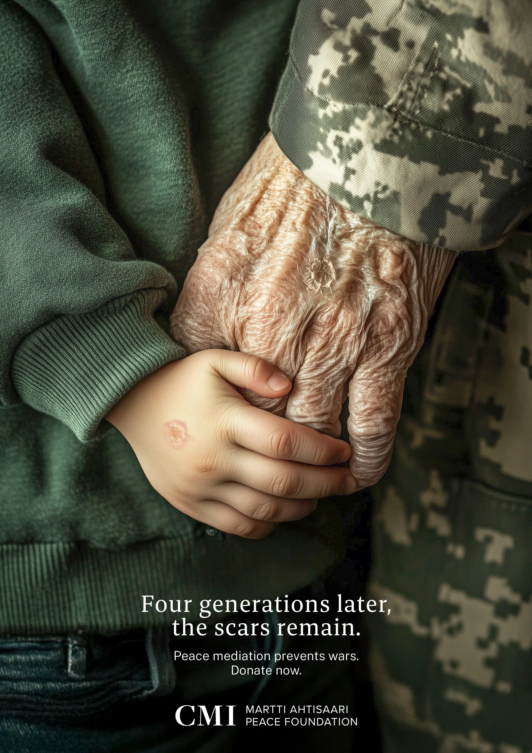 Create a print ad that raises awareness and drives donations for CMI – Martti Ahtisaari Peace Foundation.